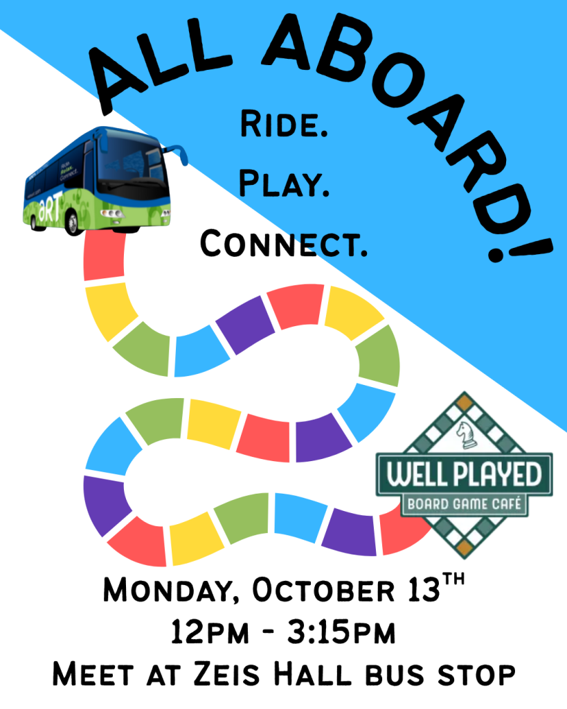 Example Instagram post promoting a Bus Ride-Along for UNCA students to go to a local Board Game Café.