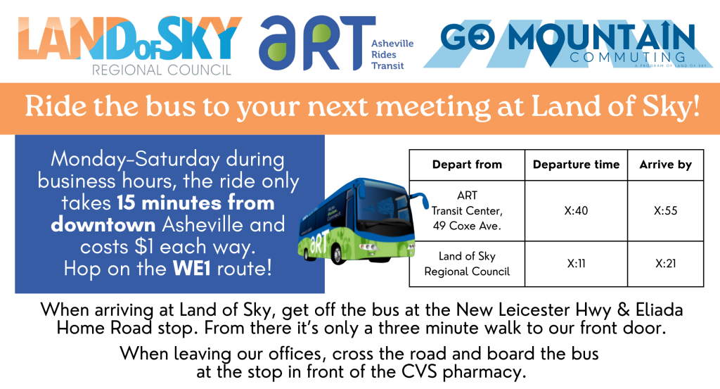 Inclusion in Commute Friendly WNC quarterly networking and learning sessions. Want to mingle with and be inspired by other workplaces and campuses who are working to provide multimodal amenities to their community? We’ll meet quarterly to discuss programs, innovations, and highlights, including awards for our standout participants.
